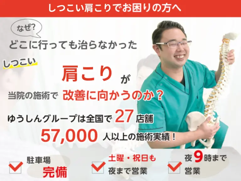 ゆうしん整骨院岩切には、慢性的な肩こりでお悩みの方が来院されており、改善している事例があります。